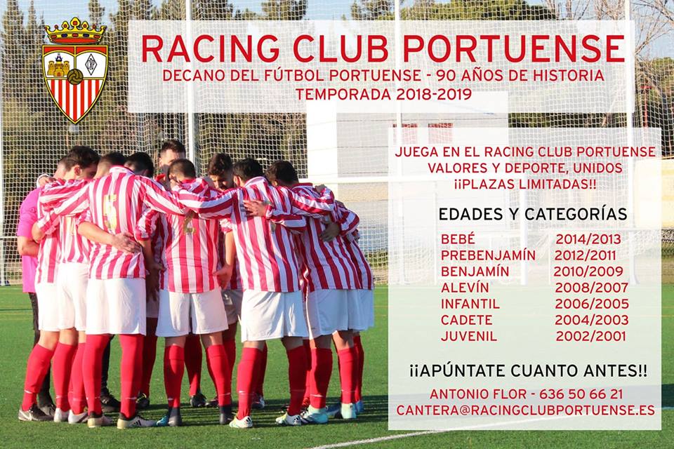 Si quieres jugar al fútbol y formar parte del Racing Club Portuense, aún sigue abierto el plazo de inscripciones para formar equipos canteranos desde la categoría Bebé (nacidos entre 2013/2014) hasta Juvenil (2002/2001).