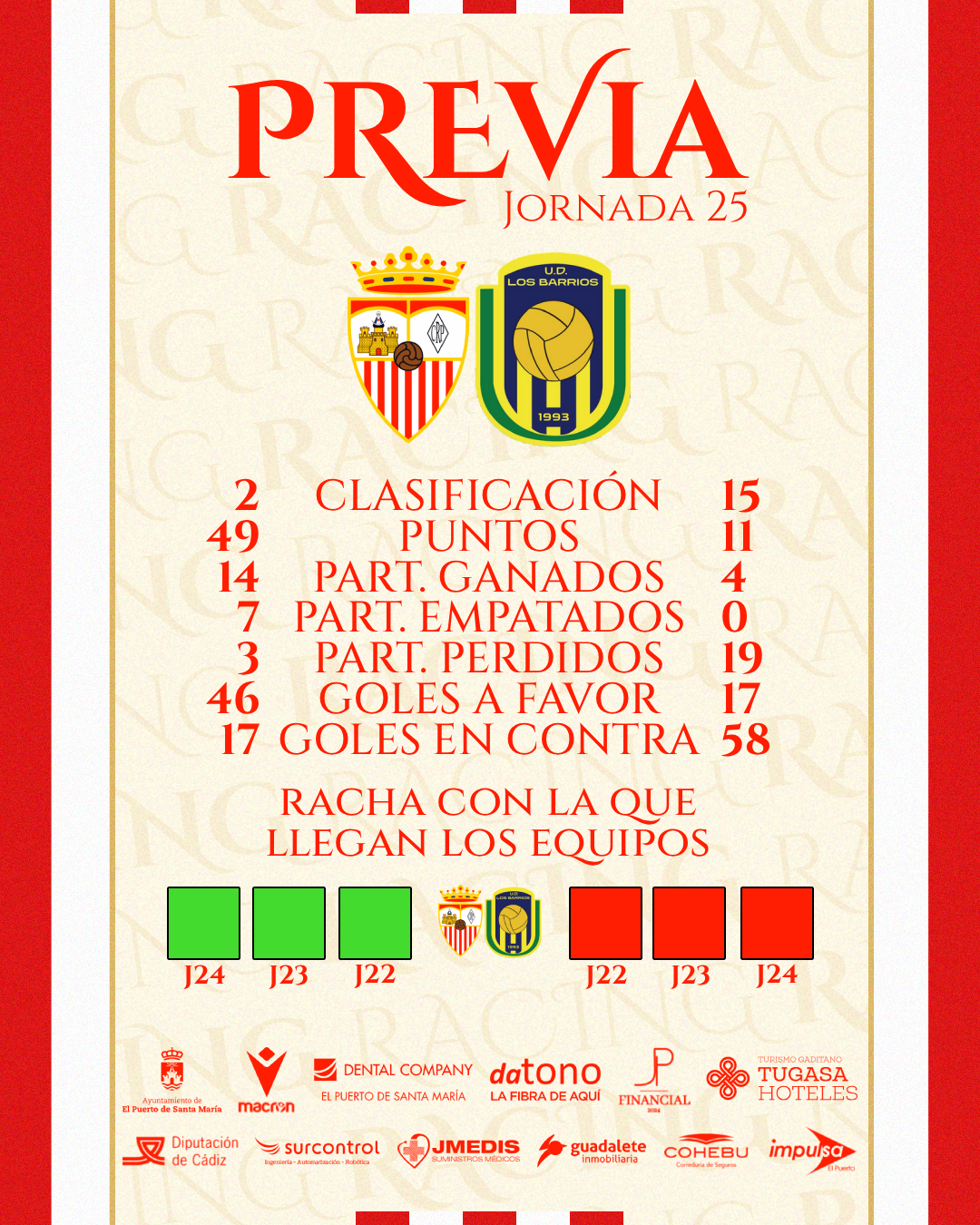 Los rojiblancos regresan al recinto donde la semana pasada logró su primera victoria liguera ante la UD Algaida con un gol de Anzu en el minuto 84, pero esta vez lo harán como local al no poder abrir aún el estadio José del Cuvillo, asunto que esta semana esperamos tener noticias favorables para su próxima apertura.